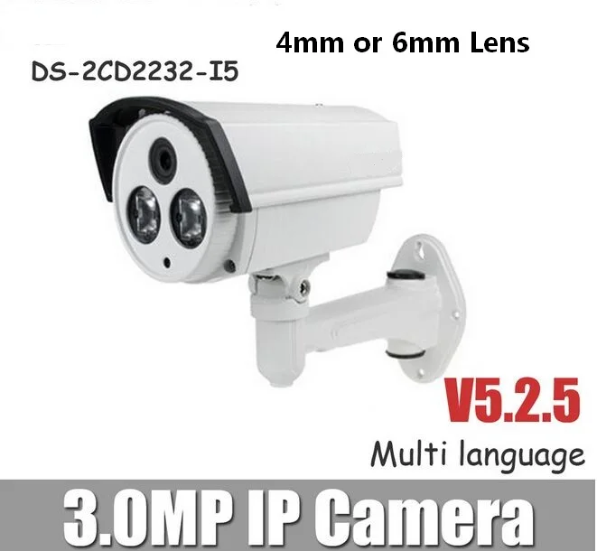 Main Features : 3MP outdoor waterproof IP Camera DS-2CD2232-I5 4mm or 6mm lens 5.2.5 multi-language Metal bracket sent as a gift
