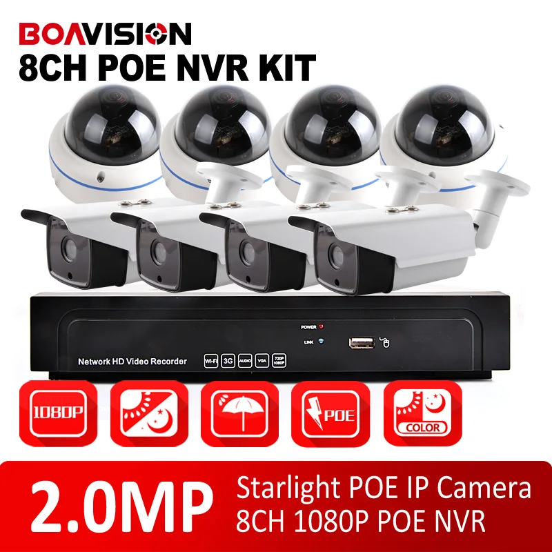 Main Features : 8CH CCTV 1080P NVR Kit With 8PCS 1080P 2MP Outdoor Bullet+Dome Starlight IP Camera Surveillance System,180/360 Degree Wide Angle