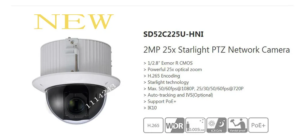 Main Features : Free Shipping DAHUA Security IP Camera 2MP 25x Starlight PTZ Network Camera Without Logo SD52C225U-HNI