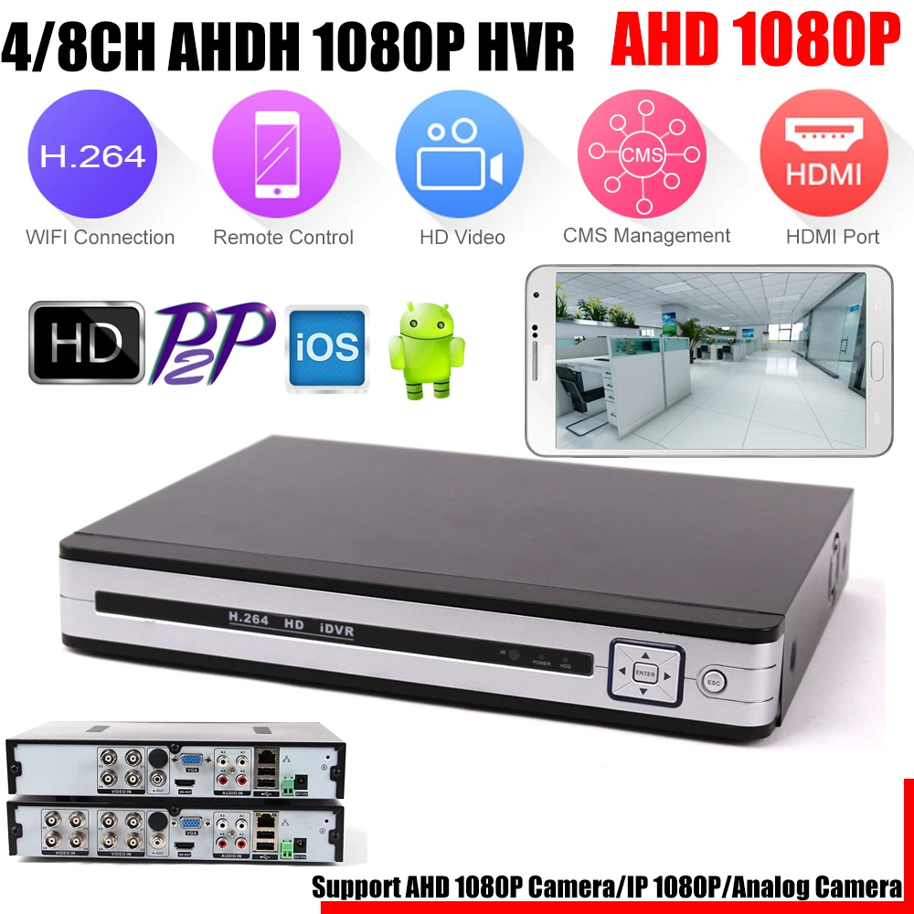 Main Features : New Arrival 4/8CH 1080P DVR AHD-H DVR Register 4CH/8CH Hybrid DVR For 1080P AHD Camera Surveillance Video Recorder FreeShipping