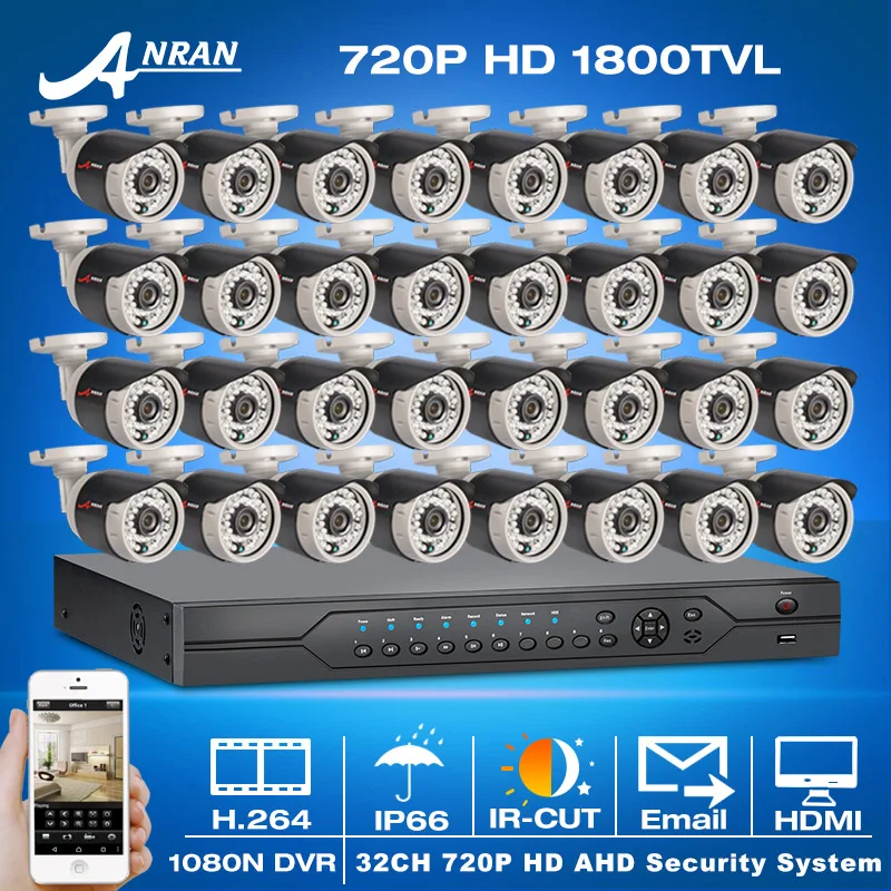 Main Features : ANRAN 720P 1800TVL IR Outdoor Night-Vison CCTV Camera Kit&32CH HDMI Video Surveillance System&1080N HD DVR Kit Email Alert