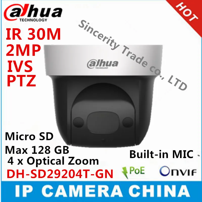Main Features : Dahua DH-SD29204T-GN 2Mp Network Mini IP Speed Dome 4x optical zoom PTZ ip camera built-in MIC SD29204T-GN English version