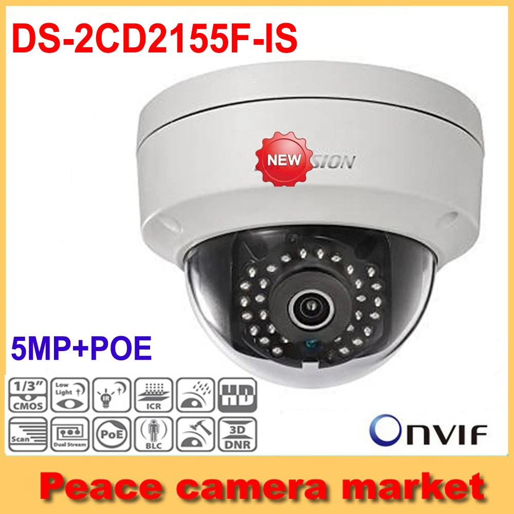 Main Features : Hikvision 5MP IP Camera 1080P DS-2CD2155F-IS 2.8mm Lens POE CCTV Mini Dome IP Camera IP66 Indoor Outdoor Support Audio/Alarm IO