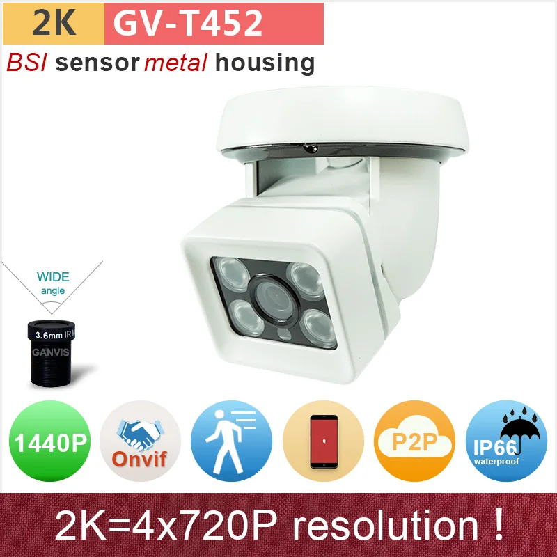 Content Review : Outdoor/indoor dual use H.265 2K ip camera 4mp dome/bullet full HD 1440P/1080P surveillance cctv camera ONVIF P2P GANVIS GV-T452