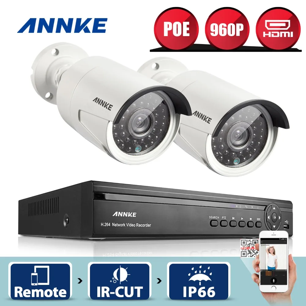 Main Features : ANNKE 4CH 960P POE NVR Kit 2pcs 960P 1.3MP IR IP Camera Outdoor Waterproof P2P Home Security PoE CCTV System Surveillance Kit