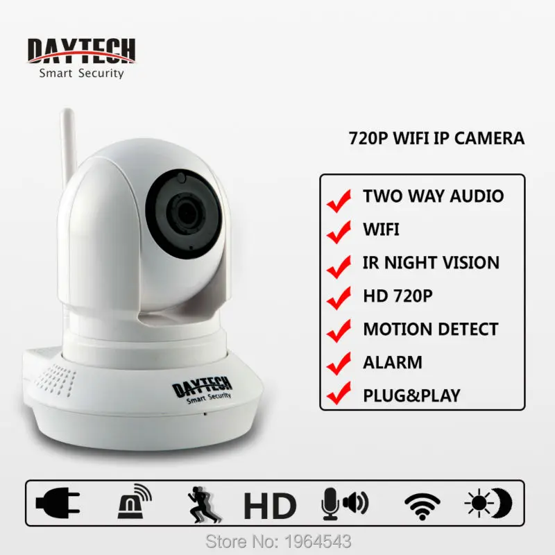 Main Features : Daytech WiFi IP Camera 720P Home Security Camera Two Way Audio Night Vision P2P PIR Motion Detection H.264 HD Video DT-C8819