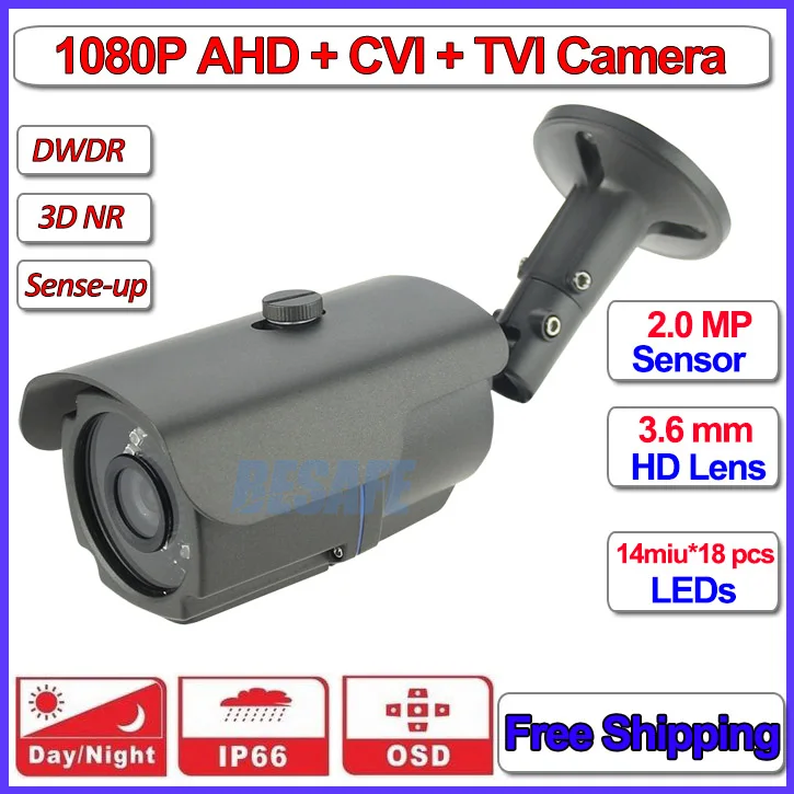 Main Features : HD Analog cctv outdoor camera 1080P AHD H L CVI TVI security product, 960H, OSD menu, 18pcs LEDs, HD Lens, DWDR, + free bracket