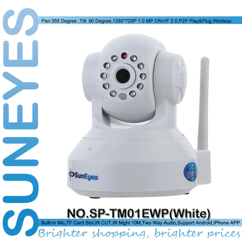 Main Features : SunEyes SP-TM01EWP 720P HD Megapixel P2P Wireless IP Camera Pan/Tilt with two way audio TF Micro SD Card Slot Free APP