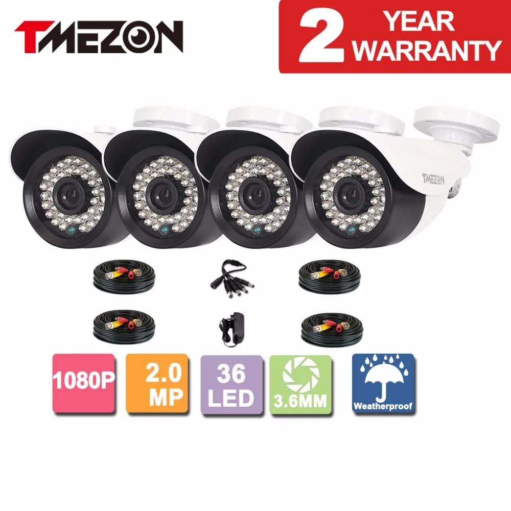 Main Features : Tmezon 4Pack 2MP 1080P AHD CCTV Camera 3.6mm Len Security Bullet Outdoor Waterproof 36Led IR Night Vision Camera